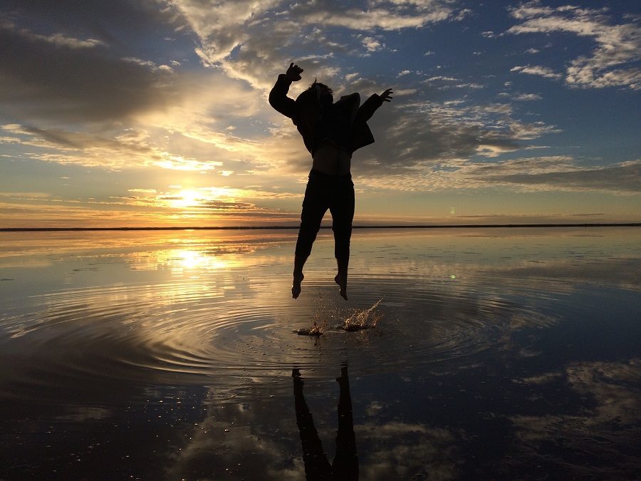 Stepping into Union Theatre, I see a lake. Onstage. Filled with water and reflecting the stars from a screen that falls to the floor behind it. This is a recreation of Lake Tyrell, the subject of Mirror’s Edge, and it is breathtaking. Throughout the play the screen changes from stars, to clouds, to trees – always reflected in the water of the lake on stage. As the actors walk across the water, they walk on the reflected sky.