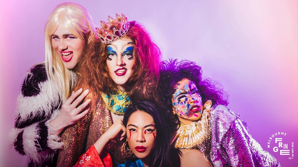 The latest endeavour of comic singer songwriter Lou Wall, Lou Wall’s Drag Raceis not your ordinary fringe show. It is a glitzy, spoofy, non-binary drag fringe show, and is not to be confused with the Ru Paul created cess pool of cis white men, something which so many of us have come to identify with the art of drag. This racially diverse, intersectional and cross gender show is everything drag should be. The performance is atypical in ways beyond casting, with the whole show revolving around how these queens can band together to dismantle the patriarchy.