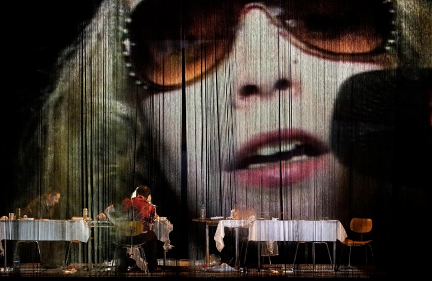 Eidinger fully commits himself to the role of Hamlet, and it is a sight to behold. When melancholic and sullen, he makes dead drops into piles of soil to avoid talking to people. His madness is palpable; he licks dirt off a sword. At times he is raving and obnoxious, physically assaulting answers out of those who confront him. Moods seem as prone to whiplash and unpredictability as the Australian government, with him beatboxing and rapping in English one moment, and throwing Ophelia to the ground like a ragdoll the next. His wild emotions reflect of the duplicitous nature of the people around him. He used to trust and love them – but something is rotten in the state of Denmark. His camcorder captures a mother claiming to mourn for her husband, yet she abandons her mourning colours seemingly overnight. Ophelia loved him, so he thought, until she began rejecting him. His friends were sent to spy on him. Could he even trust himself, towards the end?
