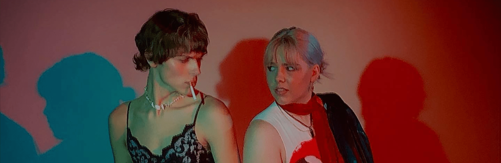 LOVEMACHINE delivers a nuanced mix of classic with a modern flair. This is established upon entrance, with an amalgamation of vintage cloth-bound books adoring the set of blood-red cubes – with, of course, The Complete Works of William Shakespeare clear on display. Paired amongst the haze of projections and writing on the wall, they create an almost liminal sense of time and place, caught amongst the turning of history, and the transitions of adolescence. The players (Lexie Smith and Jude Paddon-Row) only elevate this to the next level. Before the performance had even begun, their presence in the space, complete with clown makeup and Shakespearian ruffs established an uncanniness which had audiences hooked right from the jump.