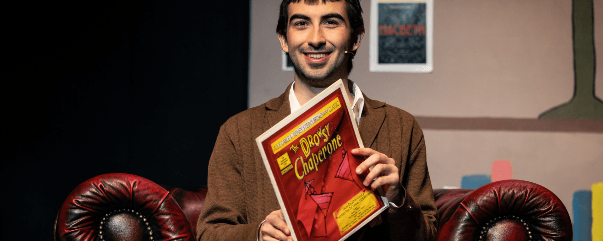 The Drowsy Chaperone follows the Narrator (Will Serafim), an anxious, socially awkward older man living alone in what one can presume is his New York apartment, as he takes us through his favourite musical, the titular Drowsy Chaperone. This play-within-a-play follows a cast of zany characters in the lead up to a wedding between Robert Martin (Gryff Connah) and Janet Van de Graff (Maggie Gilby).