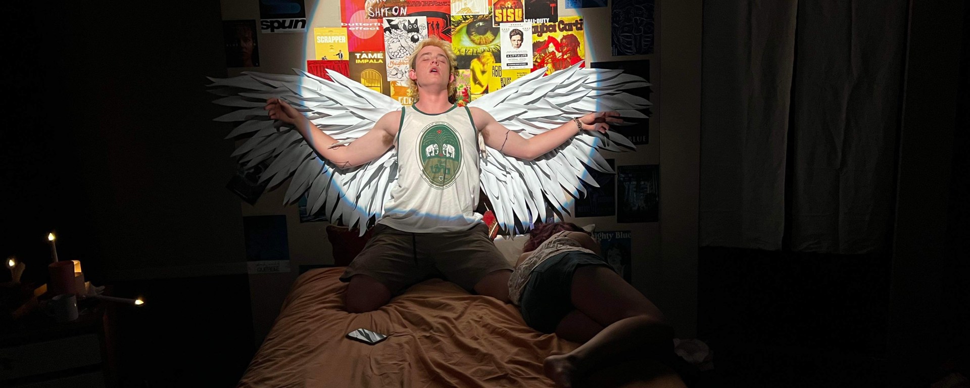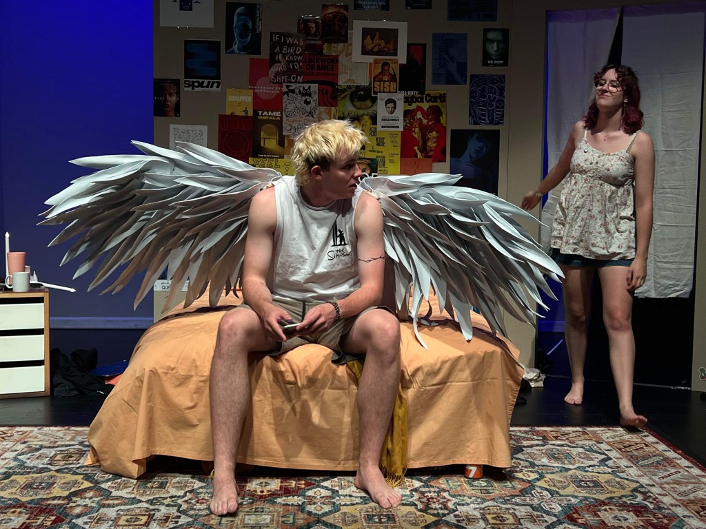 This retelling of Icarus follows Alex (Jonnie Kuch), a young modern day Icarus (complete with stunning wings), living in a share house with his partner Sophie (Emmaline Vagg) and housemates Frankie (Karissa Chowdary) and Benny (Oscar Lidgerwood). Beginning with an innocent peer into the hilariously relatable, party-filled lives of this tight-knit quartet, the story takes a turn as Alex’s secrets gradually unravel and Sophie begins to discover what he’s been hiding.