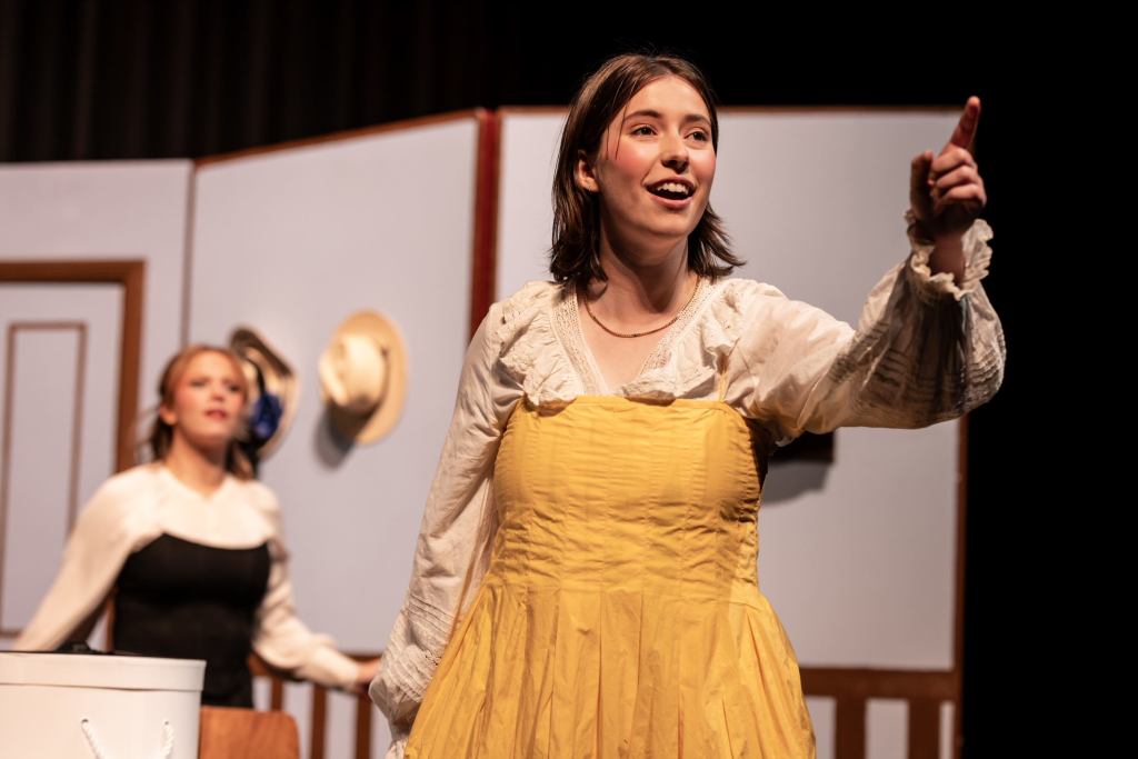 The staging was kept simple so as to let the actors do their thing, which played into the strength of this production. The energy of the cast was prevalent throughout, with Gryff Connah as wealthy old Horace Vandergelder and Meg Geljon as the matchmaker herself, Dolly Levi, acting as the glue that binds the show’s performances together. They each play their characters with the right mix of camp and genuine heart, and have solid chemistry between them. Amelie Archer (playing Irene Molloy), Poppy Bell (playing Ermengarde) and Emmaline Vagg (playing Malachi Stack) each radiated with stage presence and charisma, while Abi Hughes and Sophia Goodwin − playing Cornelis and Barnaby, a pair of Mr. Vandergelder’s staff who have a day on the town in New York City − damn near stole the show with their brilliant chemistry and joyful performances.