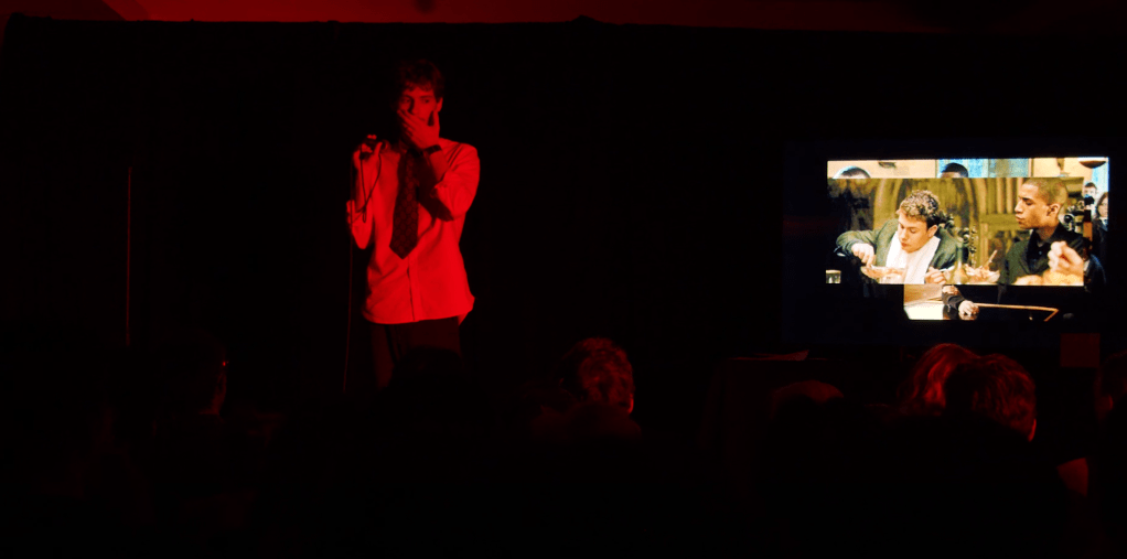 The presence of stage manager Liv over the speaker, combined with the use of multimedia and an assortment of props helps maintain the show’s rapid pace. McGrath guides the performance with animations, literary slide breakdowns and an impromptu advertisement. These elements not only inject humour but also allow McGrath to control the energy of the room. He masterfully threads these sketches together, ensuring that the show retains a hurtling and energising momentum.