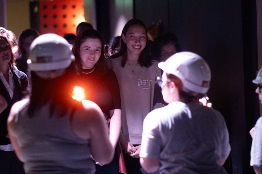 As we were ushered onto the stage, we explored the regulations that those who have spent much time inside Union House Theatre have become all too familiar with, with ‘don’t pull on the fly system’, ‘don’t play with the cables’, and sardonically, ‘don’t plug a fork into the sockets’. The minimal dialogue in the safety guides’ characterisation enabled a broader comedy within their physicality, and interaction within the audience. Their ability to respond to offers made by the audience was commendable, using the scope of their role to entertain and delight when their rules were not obeyed.