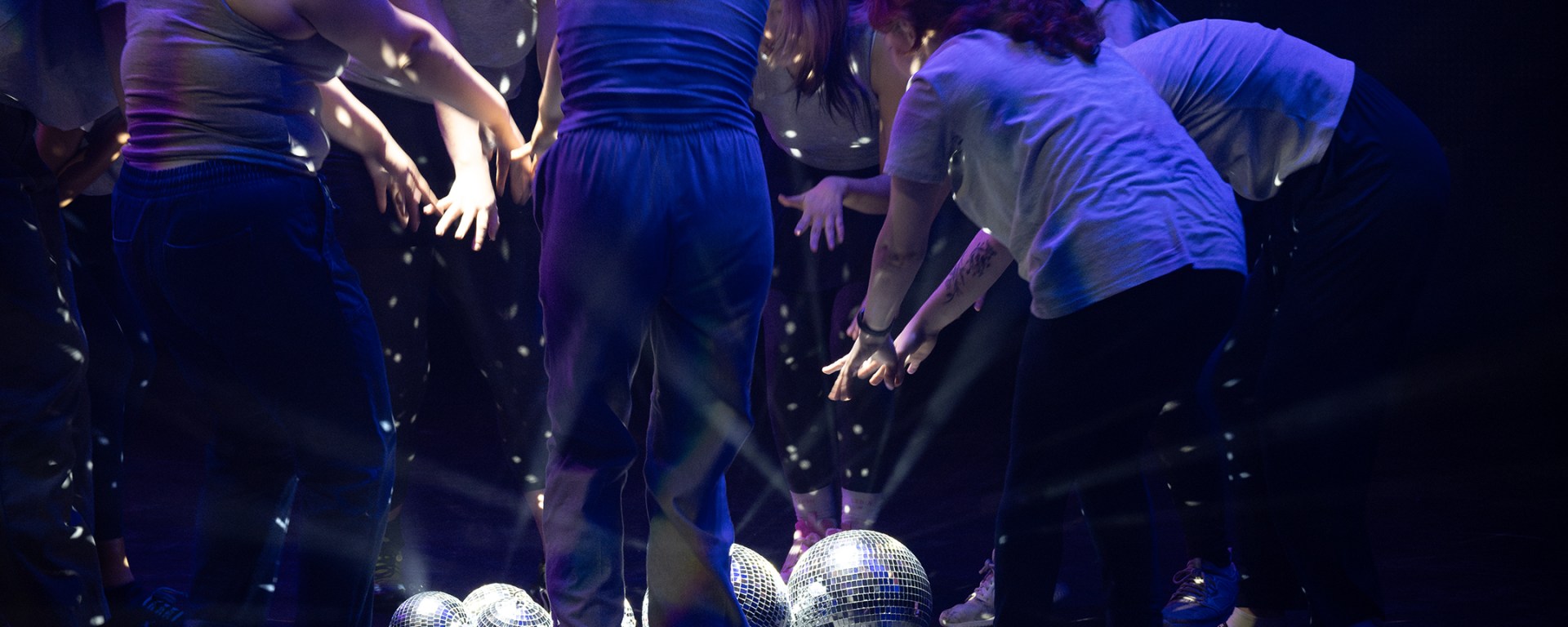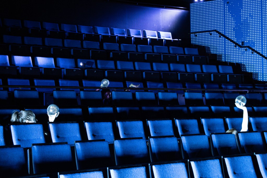 We were led around to the apron of the stage and lined up, staring out into the rows and rows of seats. Unsure of what we were waiting for, we gazed out in suspense, until the faint sounds of disco started pumping around the space. It was an enchanting shock to see first hands, then feet, arms and legs emerge from behind the seats, moving in a strangely trancelike and mesmerizing performance. The lyrics ‘everybody’s free to feel good’ had never felt so liberating, being captivated by the oddest yet most free and experimental expression. The performers, from seemingly nowhere, conjured disco balls and began to explore their texture, dimension and reflective quality, as the lights interacted and refracted a million beams across the theatre. Then following some magic cue, the performers suddenly ran on stage, joined by the full ensemble, for one final energy filled boogie – leaving the audience with a warmth in their hearts.