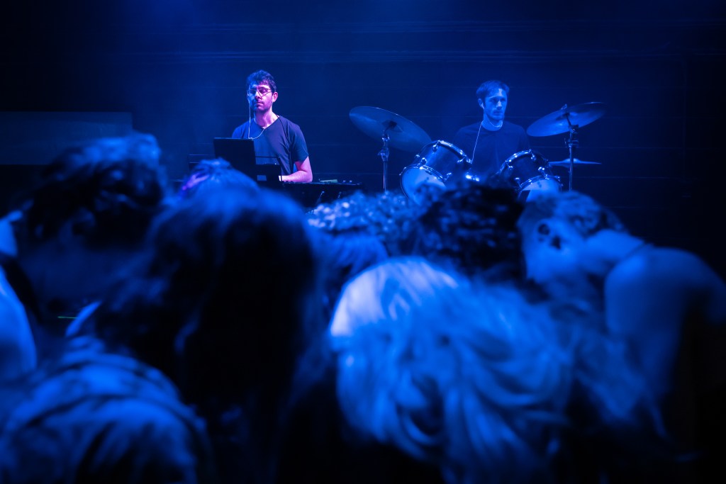 The music and sound, composed by Jack Bochow and directed by Alex Raineri, compliment the performance wonderfully by crafting a rave-inspired electronic and drum-heavy soundscape. Bochow and Raineri’s presence on stage allowed for fascinating comedic moments with the characters. These intimate, thoughtful, and funny moments of interaction between the ensemble and the music empowered Bochow and Raineri to reveal a dimension of the characters that words alone could not provide.