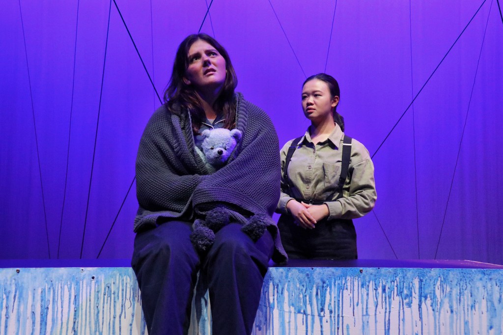 As soon as the house lights dim, the mood ripples with menace – a clear directorial choice from co-directors Saskia Powles and Campbell Jordan. Fraser and Cecilia Liu (Joan’s aunty, Harper) take us through a disquieting duologue, in which Joan suspects ill of her uncle whom she has just witnessed trafficking and beating innocent peoples. Liu’s performance is beautifully stilted, giving Harper an air of uncanniness and perversion. There is skilful dissonance in her evocation of Harper’s façade; she comforts Joan with plausible explanations to the contrary and assures her that all is well. There is a threatening undertone, signalling to us that nothing about this is well. It is here that we first begin to glimpse the hidden meanings in Caryl Churchill’s pared-back script; ‘Far Away’ stages an interrogation of “the truth”, and the myriad ways in which it can be fabricated and manipulated.
