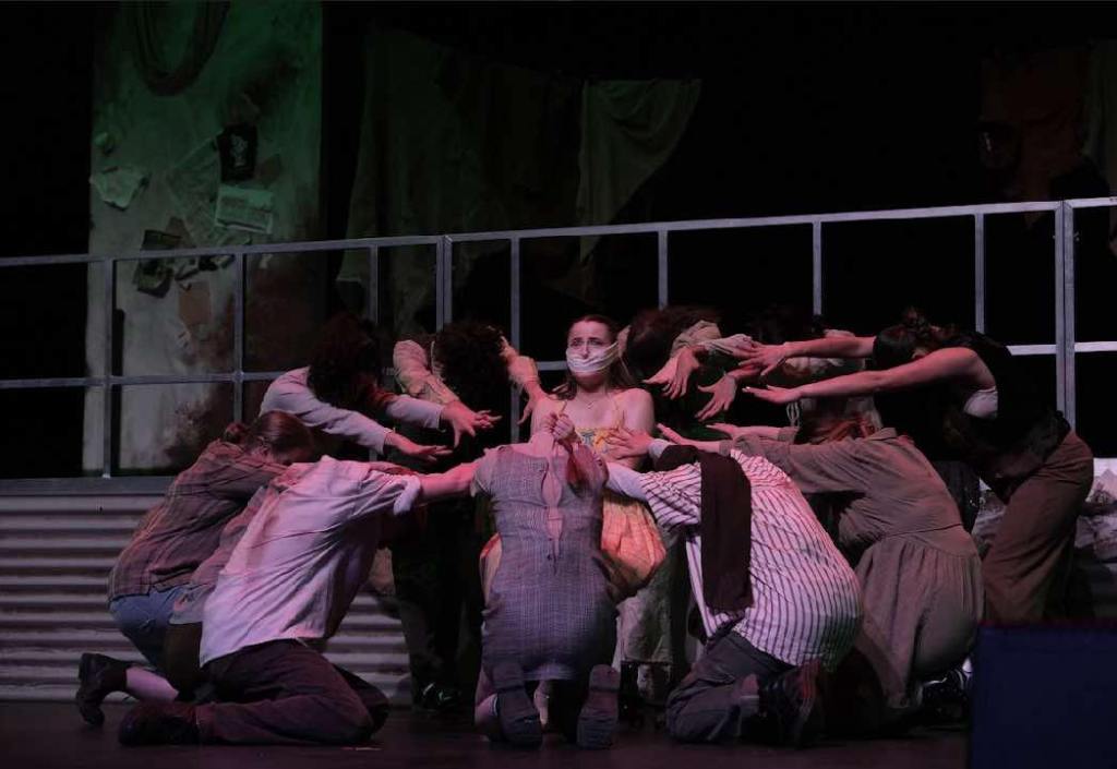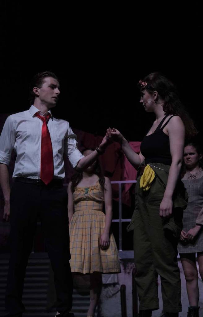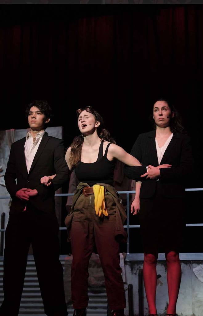 Tara Scott and Hannah Crompton’s work on the costuming and makeup design respectively was extravagant, ensuring each character looked unique, especially the ensemble cast who switched seamlessly between poverty-stricken town residents and the put-together white-collar workers at UGC. Scott and Crompton’s work made every character look so well put together, enabling every cast member to have their special moments.