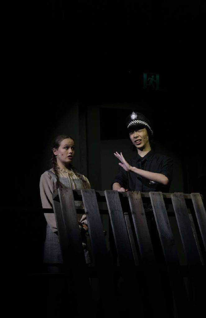 When the light illuminated the corner of the stage, we knew that something was different. Introducing and narrating the performance was Officer Lockstock, whose straight-to-the-point nature was revealed in Kenneth Jiamin’s performance, alongside the comedic Officer Barrel (played by the hilarious Moyia Vidler). Then came the truth-seeking but daring Little Sally, charmingly encapsulated by Hannah Campbell. From the get-go, we knew we were in for a treat with these amazing introductory performances.