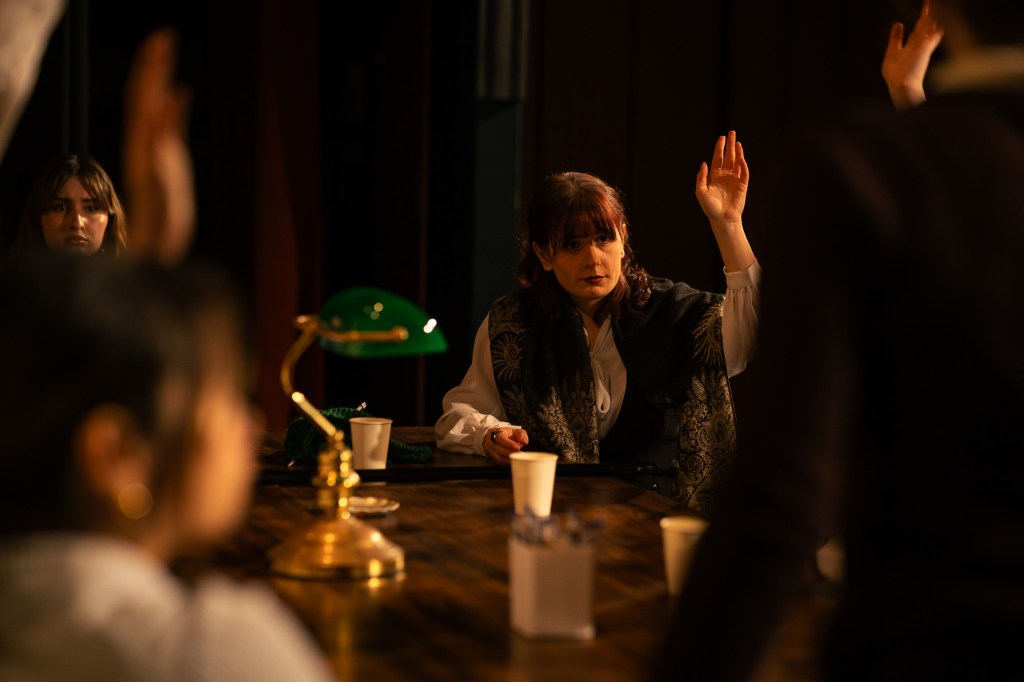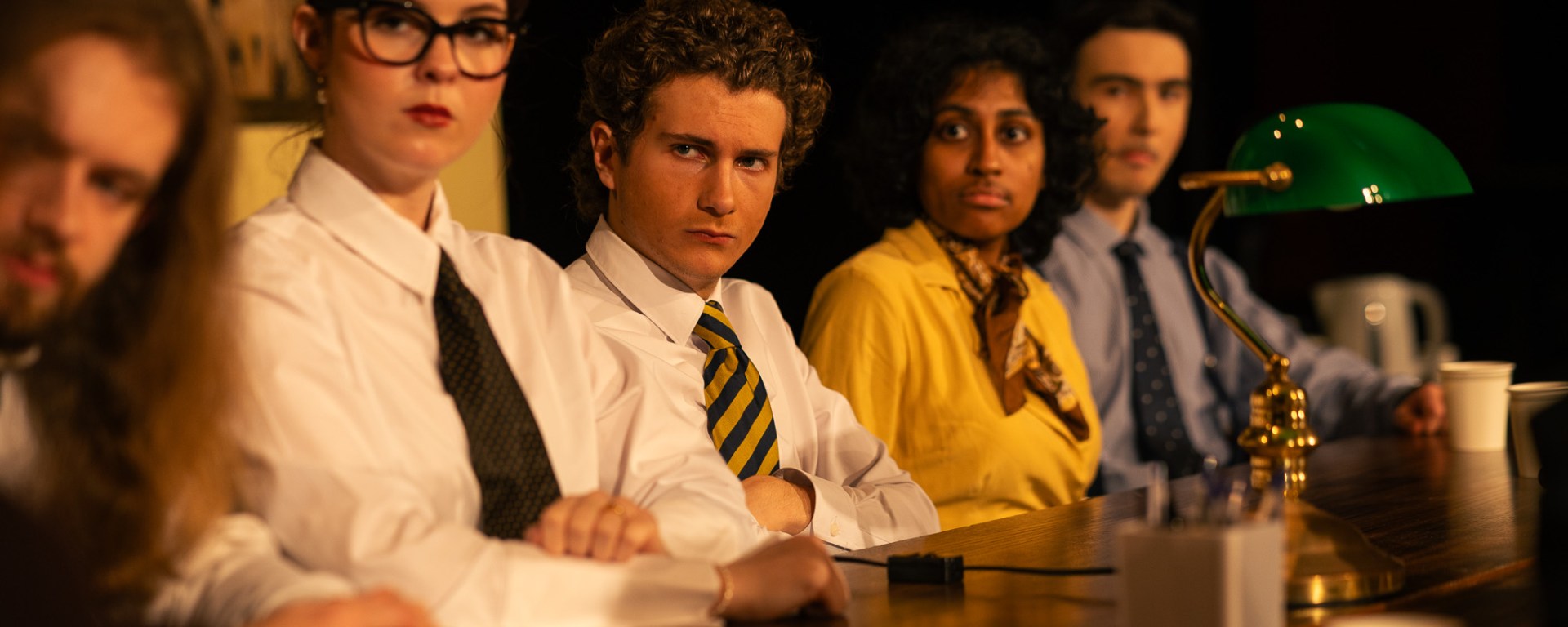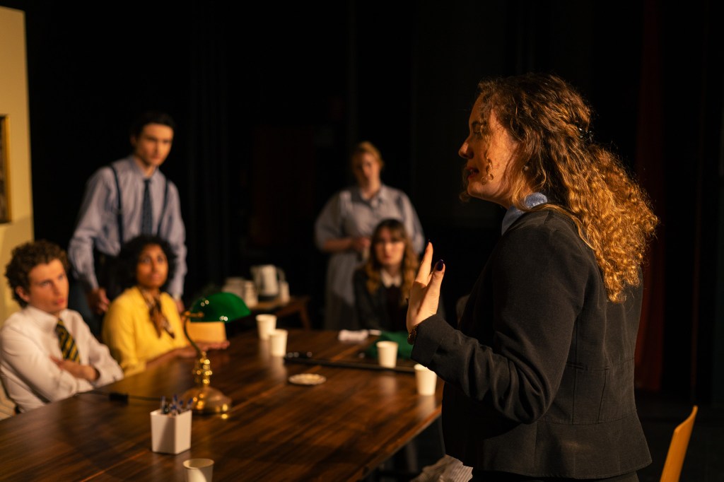 One question I had upon entering the venue was “where the hell did they get the green lamp that looks like the ones you find in the courts and a functional water cooler?” As I was pleasantly surprised that the set and props team consisting of Lana Videroni, Ciel Giles-Manor and Emi Ciccarelli were able to source these items because as someone who has worked alongside set and props teams, sourcing very niche props or set pieces can be an absolute nightmare. The work they had done with such attention to detail was phenomenal. The costuming by Nicholas Short with assistance from Lucinda Ryan was cheeky and I loved how they captured the essence of each character from the heavy skirts of the wise Juror Nine to the more modern “office baddie” appearance of Juror Twelve, solidifying how the play still resonates with modern audiences. The warm and dim lighting was an interesting choice made by technical designer Hugo Iser-Smith as it helped make the stage very intimate, but I do think there were other lighting choices that could have been made to heighten certain moments of tension or the shifts in the dynamics of the jurors. However, props to Iser-Smith for operating both lighting and sound as the sound for this show was difficult, especially with matching the door locking to the actual door closing. Doing both jobs is a hard task which was still very well executed! Some moments of the play did feel a bit stilted as there were issues with vocal projection, making it difficult to hear the cast even though I was in the centre of the venue, but I do understand that I watched the show on its first night, so this could relate to how the show was still finding its bearings in a different venue.