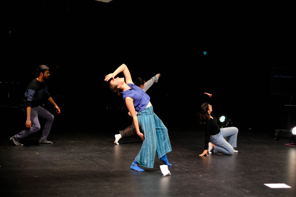 Ourselves, choreographed by Julie Tran, explores the music and movements that make “us”. Tran, along with Aruna Brown, Maanas Kunchala, Nurhildayati and Yashika Hablani, all added their individual flair to the piece that made it feel as if I was viewing a snapshot of their lives, ranging from the banality of getting ready in the morning set to a Bollywood song to having a fun night dancing to ABBA’s Super Trouper. The truthfulness of the performance then revealed the inner turmoils of each character, from the hassle of studying to the mundanity of corporate life, leading to the universal revelation of freedom even when life seems lacklustre. Quietness is instilled, with the performers leaving behind the noise of their lives to listen to the waves. A choice I found interesting was that all the performances had a part of their costume in blue, creating a sense of connectedness between the different lives they live, further instilling their moment of clarity at the end. It was beautiful to see a piece that did not shy away from looking at the simplicity of life, the beauty of routine and the need to sometimes have a moment to ourselves, which kept me thinking about the choices I make on a daily basis and if I had my own “theme song”.