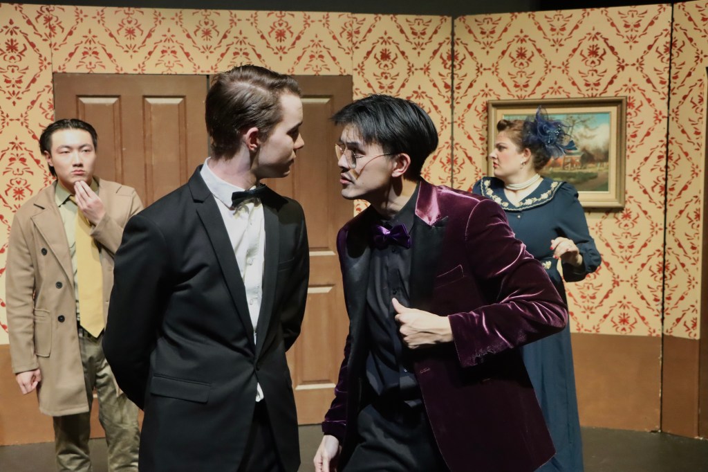 The main critique I have of this production of Clue: On Stage is that it could have benefited from a little more rehearsal time to nail down some of the timing, not just with the actors but with the scene transitions. The set was well designed, but managing a lot of moving parts is difficult for even the most professional of shows. Though I do think the stagehands and cast did a commendable job of moving things around as quickly as possible, I could just hear my high school drama teachers yelling “transformation of space!” in the back of my mind as tables were being wheeled on and off.