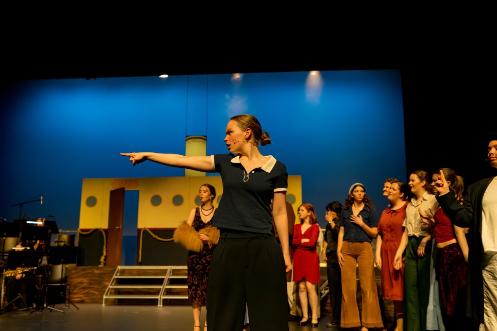 The set team, headed by Grace Doddrell, had a difficult task of balancing the large cruise ship location, and a live band taking up a large portion of the stage. What came from this was a really effective use of upstage and downstage for various moments and locations on the ship. I thought it was clever how the bedrooms and jails of the ship were merely abstract placements of beds or prison bars, yet always downstage on the apron, to emphasise that we are in a separate location to the ship itself. This is also a kudos to the Hannah Crompton’s direction, with a really effective use of the space on the ship. The use of levels to symbolise moments of isolation, or power dynamics within a scene, was effective throughout, such as at the end of the song Easy To Love, where Hope’s position at the top of the balcony created a heighted sense of isolation from where the rest of the song’s choreography took place, below on the stage floor. I also really enjoyed the touch of having a haze come out of a stoker at the top of the ship set piece, to look like a burst of steam coming from the ship.
