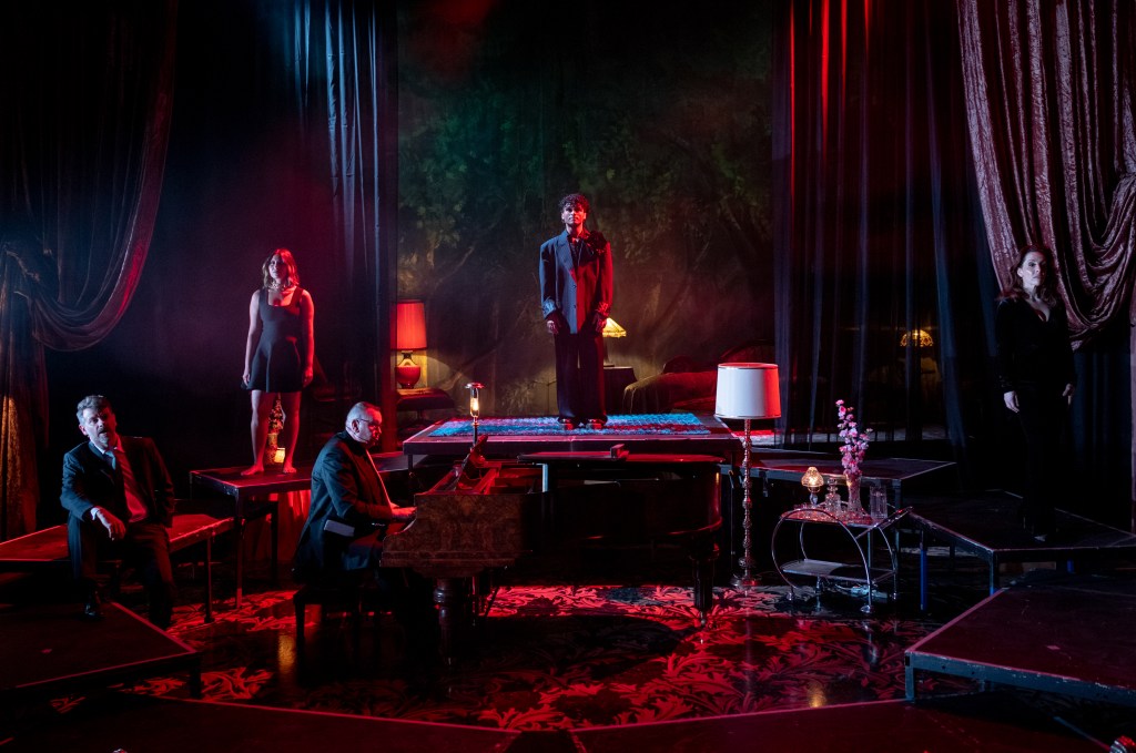 The Theatre Works stage, transformed by designer Rob Sowinski, is a sight to behold. The intimate venue is adorned with cosy antique furniture, vintage lamps of various shapes and sizes, golden velvet curtains and, just in front of the general audience, little round tables topped with red tablecloths at which a few lucky audience members could sit and watch the action up close.