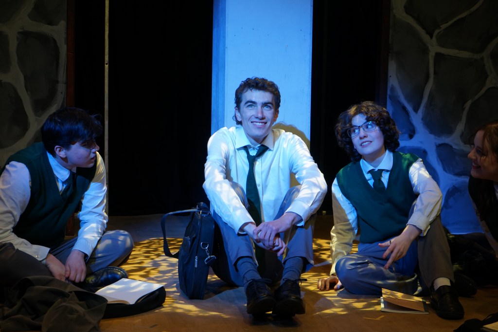 Similarly, Kenneth Freeman (Bridget Hyde) added a distinctive touch to the story. Though his stage time was limited, he was given surprising depth. His persistence in repairing a broken recorder made him the character most aligned with ‘future’ and ‘dreams.’ He reminded us that youth is not only about immediate conflict but also about cultivating personal interests and imagining what lies ahead. The callback in the final scene was especially poetic: once fixed, the undefined noise rather than music came out of the recorder – it was searching for radio signals. At he Mutineer gathering that night, this noise symbolised the yearning of young people for the vast unknown world beyond them. The recorder’s restless ‘search’ became a hauntingly beautiful metaphor.