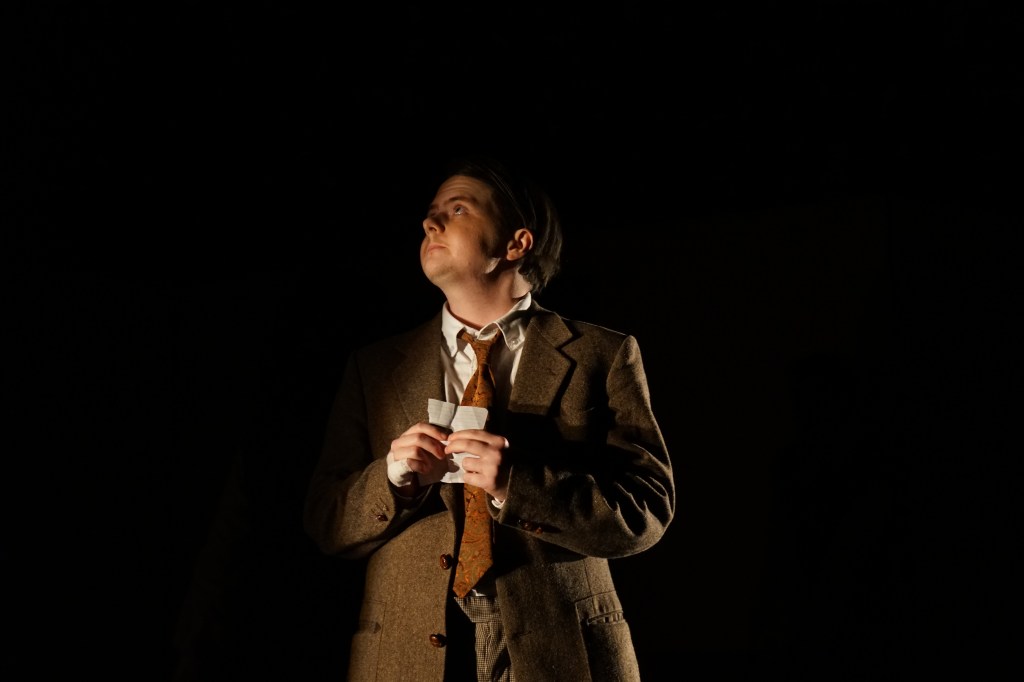 These ‘tableau moments’ were reinforced by excellent use of both sound and lighting. Music ensured the continuity of narrative and mood — a poorly handled scene change can feel disruptive or tedious, but here the design carried and extended the story, maintaining a smooth and comfortable rhythm. Meanwhile, the lighting design (Jane Pekin and her team), was equally thoughtful. The use of side light during scene change was particularly effective: it provided sufficient contrast in the upstage darkness to allow for set transitions, while also sculpting the actors in ways that lent the frozen images a natural beauty. The qualities of Fresnel side lighting — soft yet directional — gave figures clarity and dimensionality, strengthening characterization.