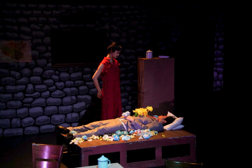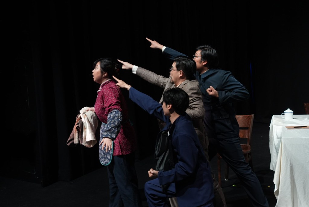 Director Chenkai Tian introduces numerous inventive ideas. The production retains a realist framework while incorporating Brechtian alienation effects with filmic pacing. Scene changes often dissolve through abrupt blackouts and sharp cuts, blurring temporal continuity and breaking immersion so that the audience may step back and reflect. One of the most striking sequences occurs during Zhang Yiman’s breakdown: she sings the folk song I Want You in a surreal dreamscape, where every character’s costume bears a trace of red, a colour of festivity turned into tragedy. Just as she rises to join a group photo, the dream ends. In the next scene, she reappears broken and mad.