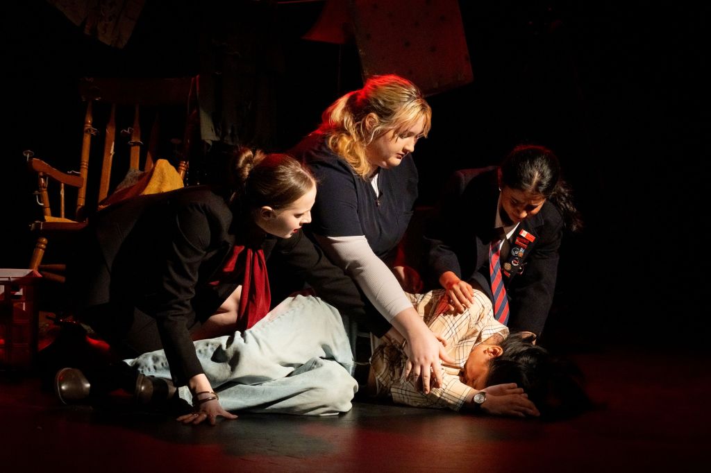 Anaya Sircar as the youngest Marlow – well, half Marlow – Scout, gave an exemplary performance. Scout was constantly on the outside looking in, wanting desperately to be included in on the secrets and lives of her siblings, and Sircar embodied this desperation and innocence. Finally, Emma Boyce as Cian. The daughter who remained by their mother’s side until the end, enduring years of torment. Boyce brought a raw realism to this character that hooked me in from the beginning. Going from the dry and detached version of Cian at the start to the distressed image of her we see at the end, clawing at Siobhan’s leg while she’s dazed from hitting her head, begging for her mother’s forgiveness, was more than impressive. That moment stands out for me as one of the most impactful, and Boyce delivered. Every single one of these performers gave everything to their roles and what resulted was a beautiful blend of comedy and gut-wrenching tragedy.