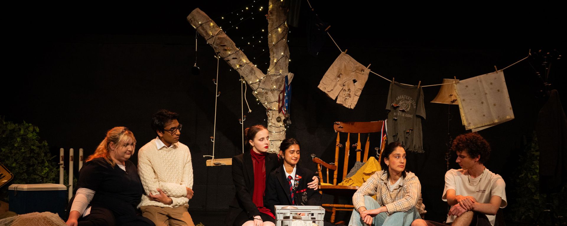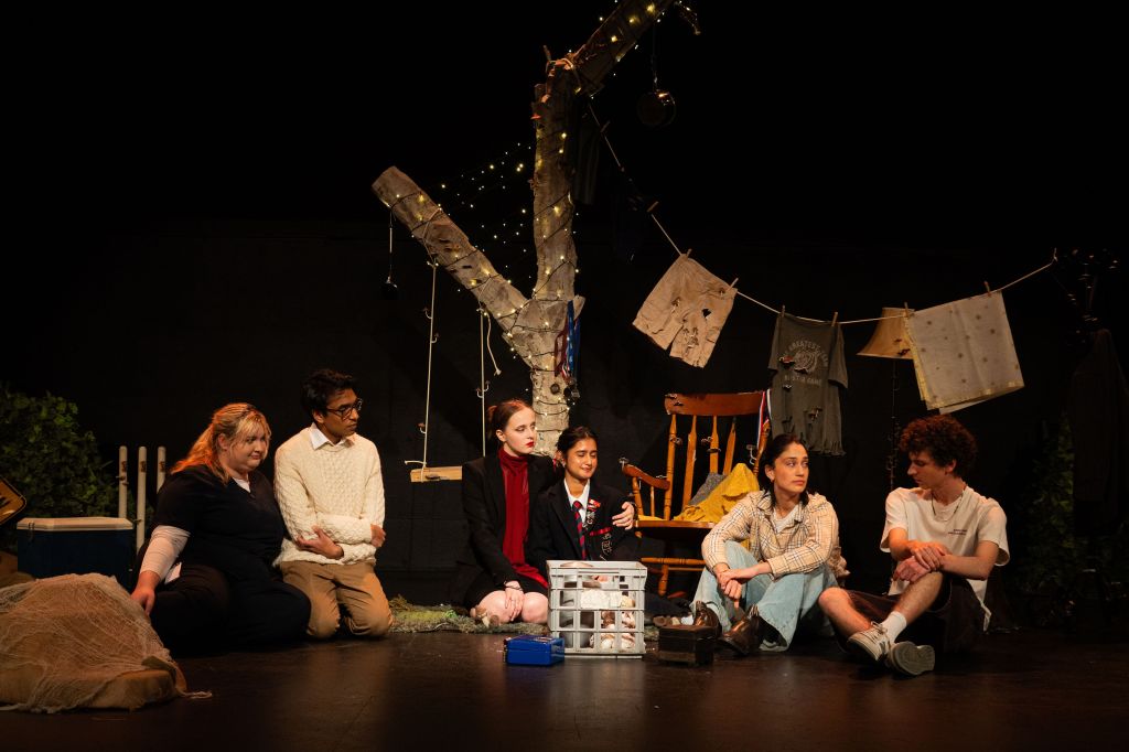 Sitting in the Kaleide Theatre looking at an eclectic mesh of lamps, fairy lights, CDs, mushrooms, rugs, a swing and a barren tree – an unfamiliar image that sparks a sense of nostalgia. Music plays softly, a folk indie mix that matches the scrapbook-esque staging before me. ‘Fable’ by Gigi Perez plays and I know that I’m in for a tear-jerker.