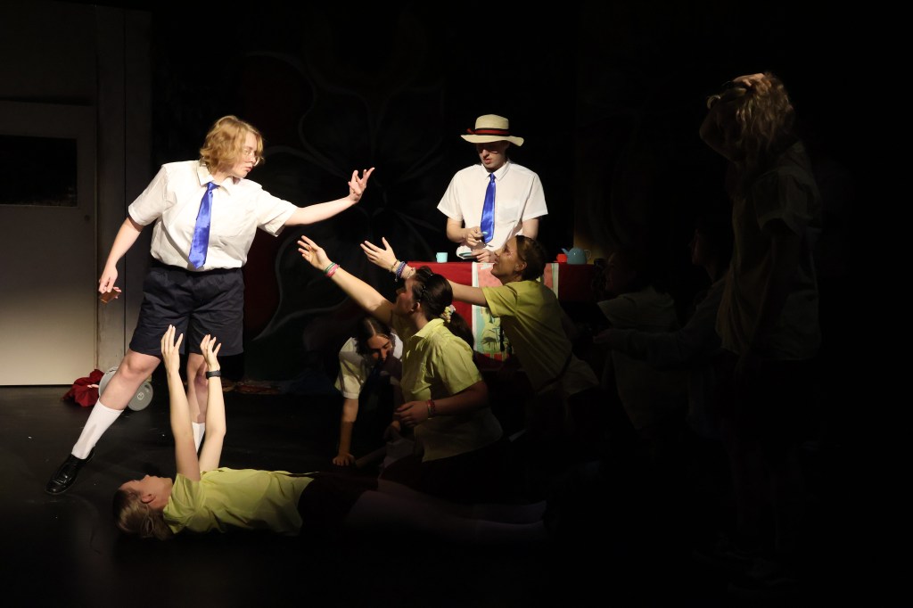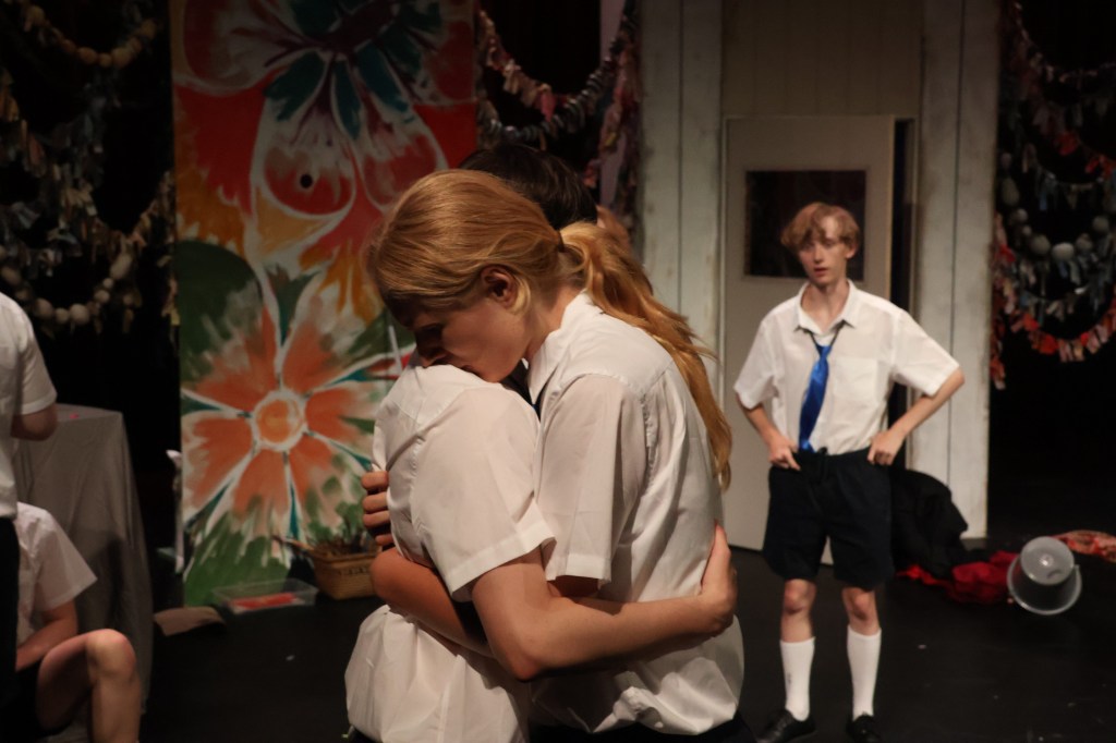 For a 90-minute show with no interval performed in a small-medium black box theatre, the show had a massive cast. True to high school drama, the characters are familiar tropes. On the girls’ side, we have: the strong-willed head girl, Taylah (Amelia Miller); the rebellious vice head girl, Valerie (Emily Lorna); the nerd, Jane (Theresa Cornelia); the wiccan, Summer (Sena (Mieke) Nuske); the angry lesbian, Maude (CJ Du Blêt); the loner, Sylvie (Camrynn Brown); and the emo-artist, Lily (Laura Henderson).