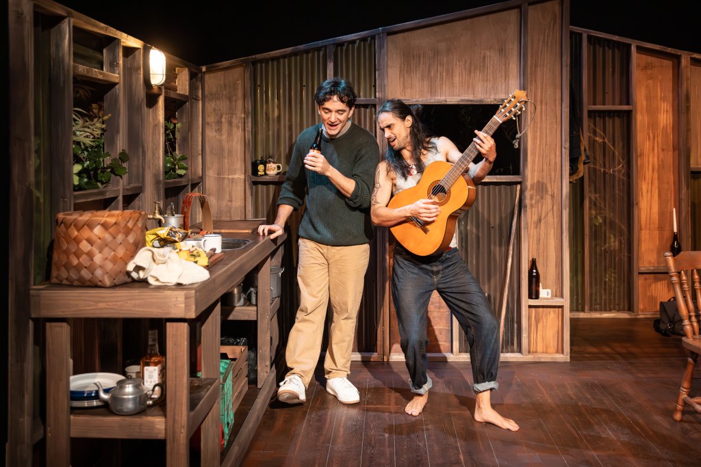 Harrie Hogan’s lighting design cleverly captured the passing of time through an intricate use of shadow and soft lights. I was particularly struck by the moving headlight of Issac’s car pulling up to the cabin at the top of the show. It instantly placed the audience in a moment and then held us there. Similarly, Zoë Rouse’s costume design was so detailed for something so naturalistic. I was delighted to note the small holes in the jumper that Issac was wearing or the cuffed jeans of Tāne. It showed such a sense of pride and confidence in the design work on the show.