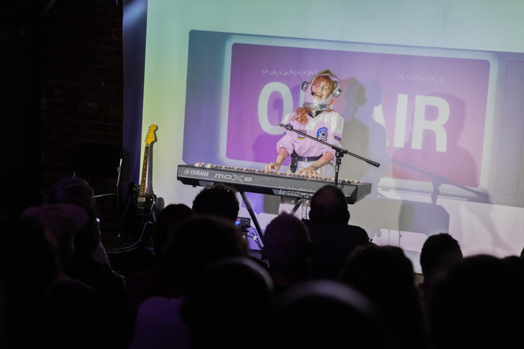 When entering the Motley Bauhaus, you’ll notice the colourful posters of various comedy festival acts. Keep an eye out for the poster for If You’re Listening. It’s the one with a space-suitted Ally Morgan looking out with mild confusion and bewilderment. Don’t let this fool you; Morgan knows exactly what she’s doing. Using only a variety of instruments, a projector screen and a couple of chairs, Ally Morgan takes us on a rollicking intergalactic musical odyssey, breathlessly jumping from bangers to ballads with gags scattered generously throughout.