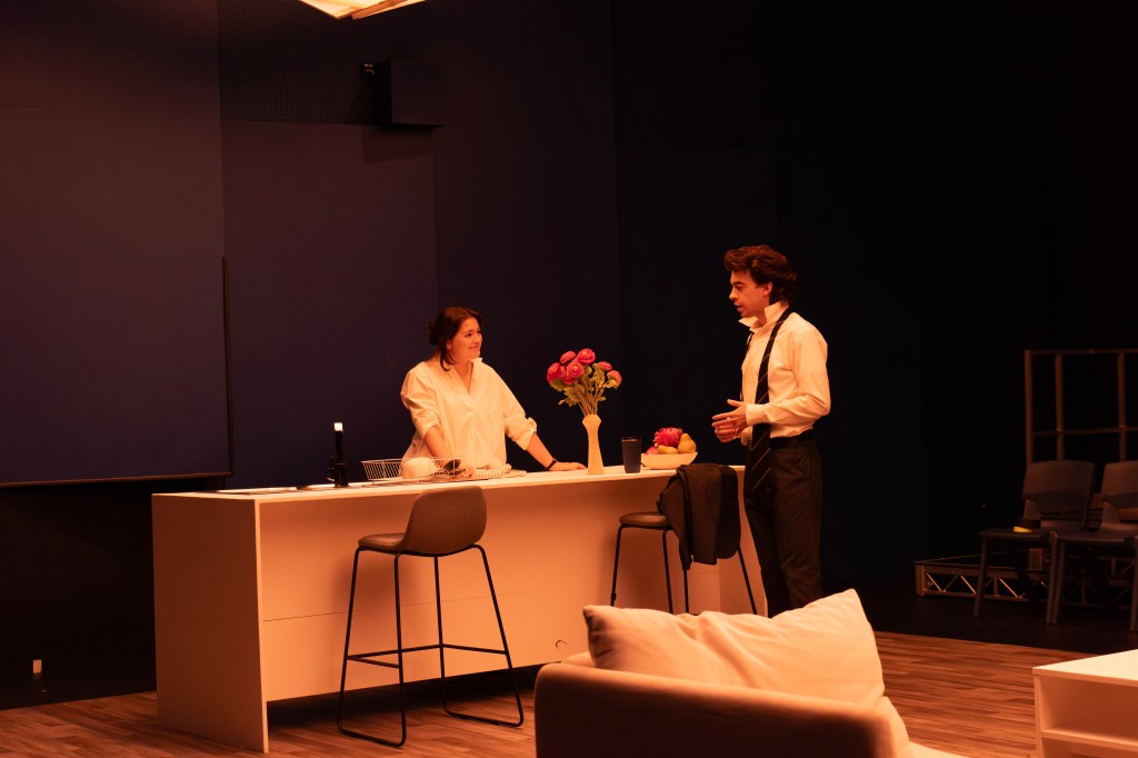 In the program, the show is described as an exploration of changing morality around queerness in the 2000s. It encourages us to examine the limits of what is acceptable or perverse. Martin himself asserts, halfway through the play, that it’s not important what he does, morally speaking. It’s only wrong if people find out. As a 2026 audience, the themes of queerness are present, but the main thing on my mind was the release of the Epstein files, and the way depravity is excused within circles of the wealthy elite. It’s impossible to ignore Martin’s fame as being an influence on his character, shown through his sleek and professional aesthetics and costume (designed by Elise Craig). Connah’s humorously macho portrayal of Ross and their locker-room style conversation seemed to exemplify a patriarchal objectification and disrespect for women, that Martin conveniently considers himself exempt from. The play’s unflinching nature allows for nuanced interpretations. I am impressed by the decision to perform it here and now and believe it to be a fiercely necessary text.